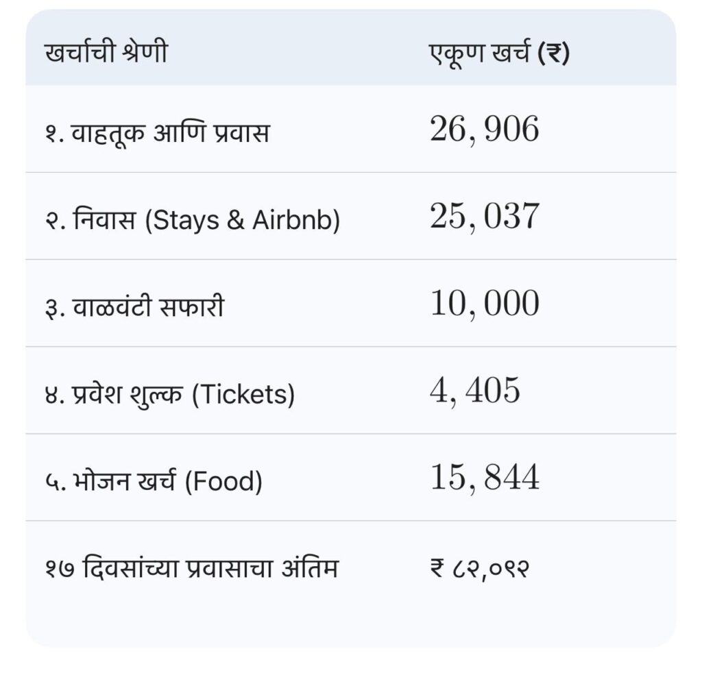 • आमच्या सर्व मुक्कामाची एकूण बेरीज: ₹ २५,०३७